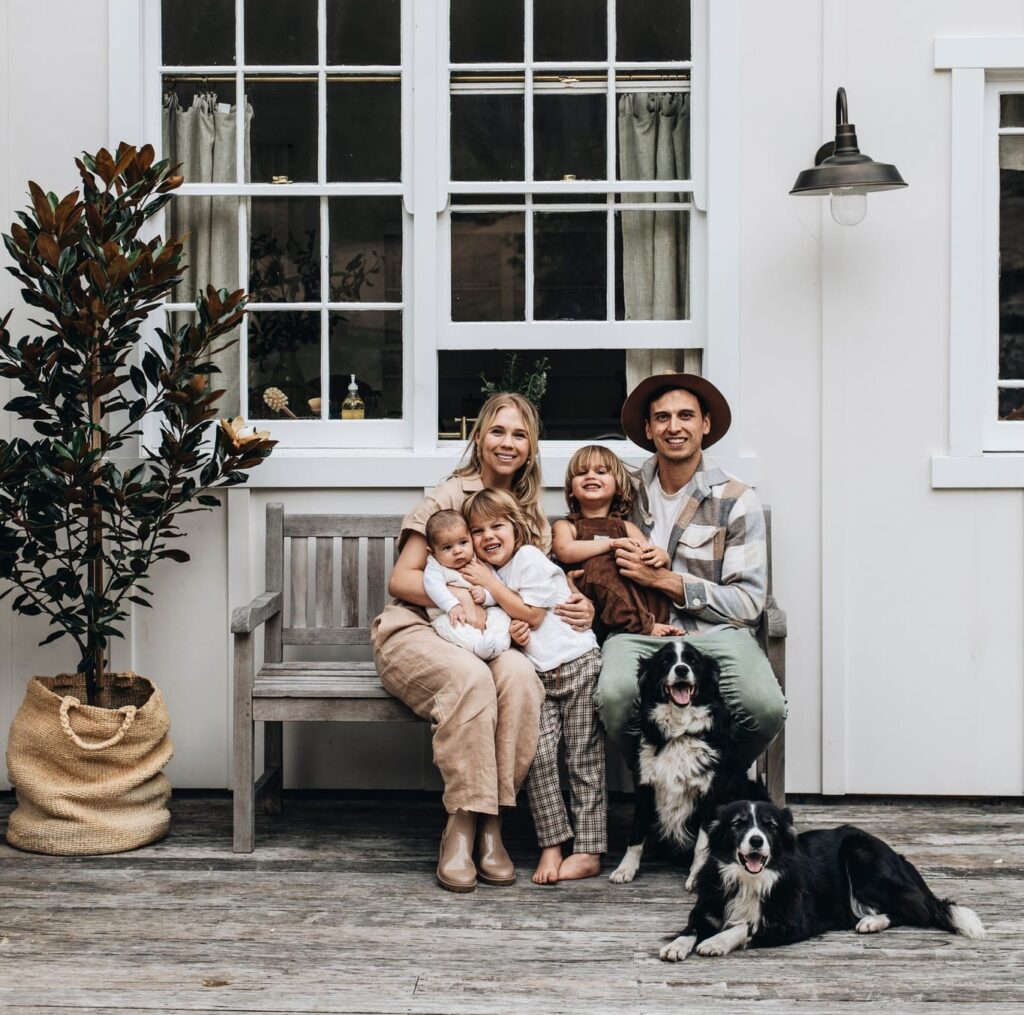 Jenn and Ryley went on to build Talm Beach House in nearby Anna Bay, which they lived in themselves before renting it out. But then they needed to source a place of their own. “Caught between builds and exciting new projects, finding our dream property and having another baby, we found ourselves needing somewhere to stay for the interim,” recalls Bliss. The solution came in a shed-cum-office building that was owned by her newfound family’s plumbing business. The Shed was born. “Using the existing shed and office on my husband’s family property built 30 years ago by his father, we decided to convert it into a humble space to house our little family of five.”