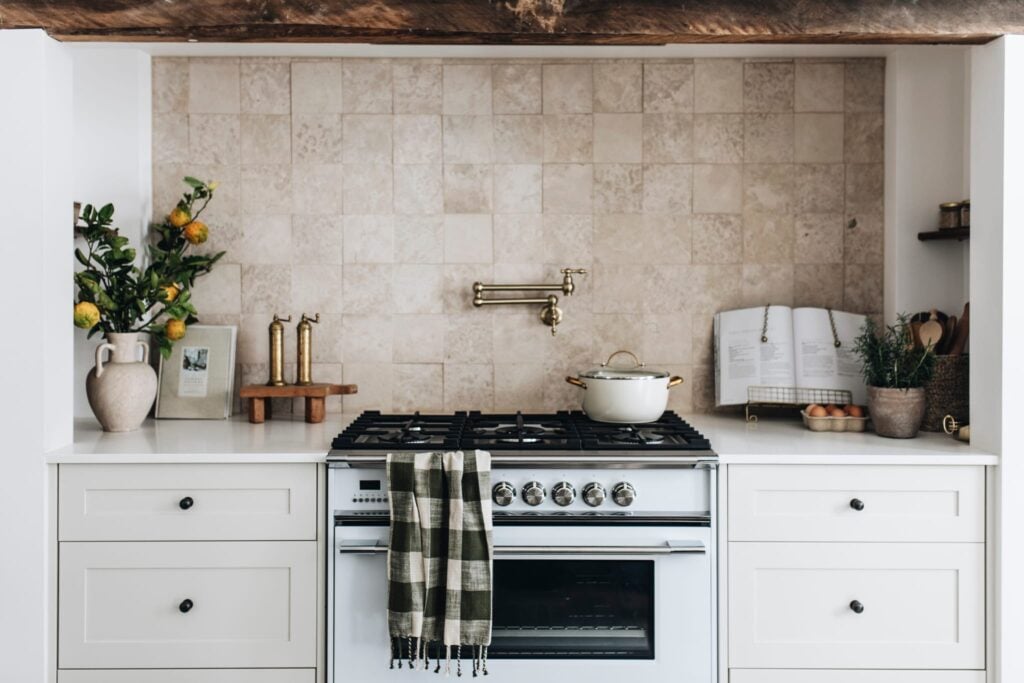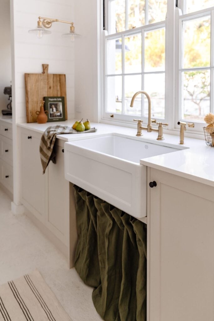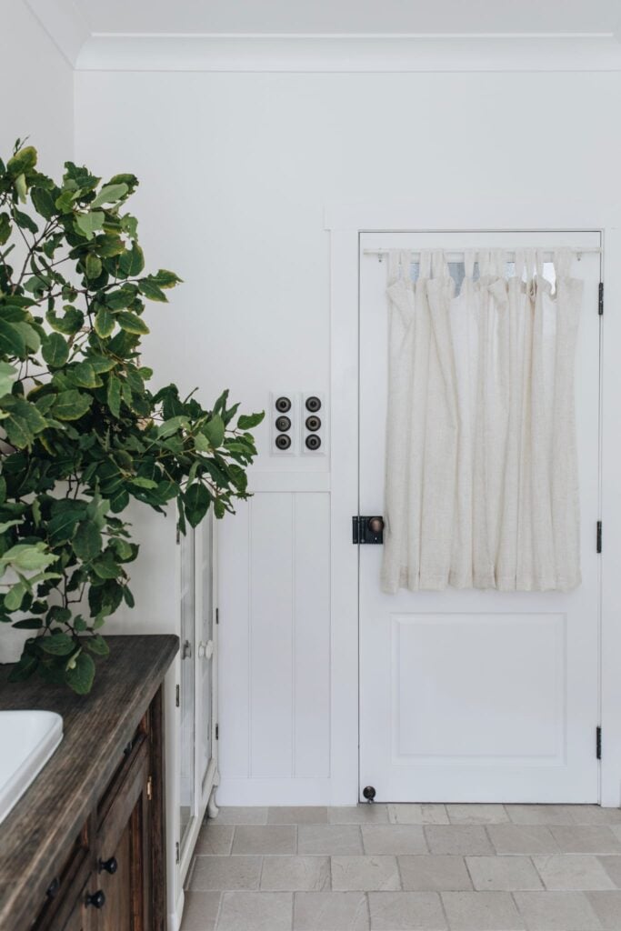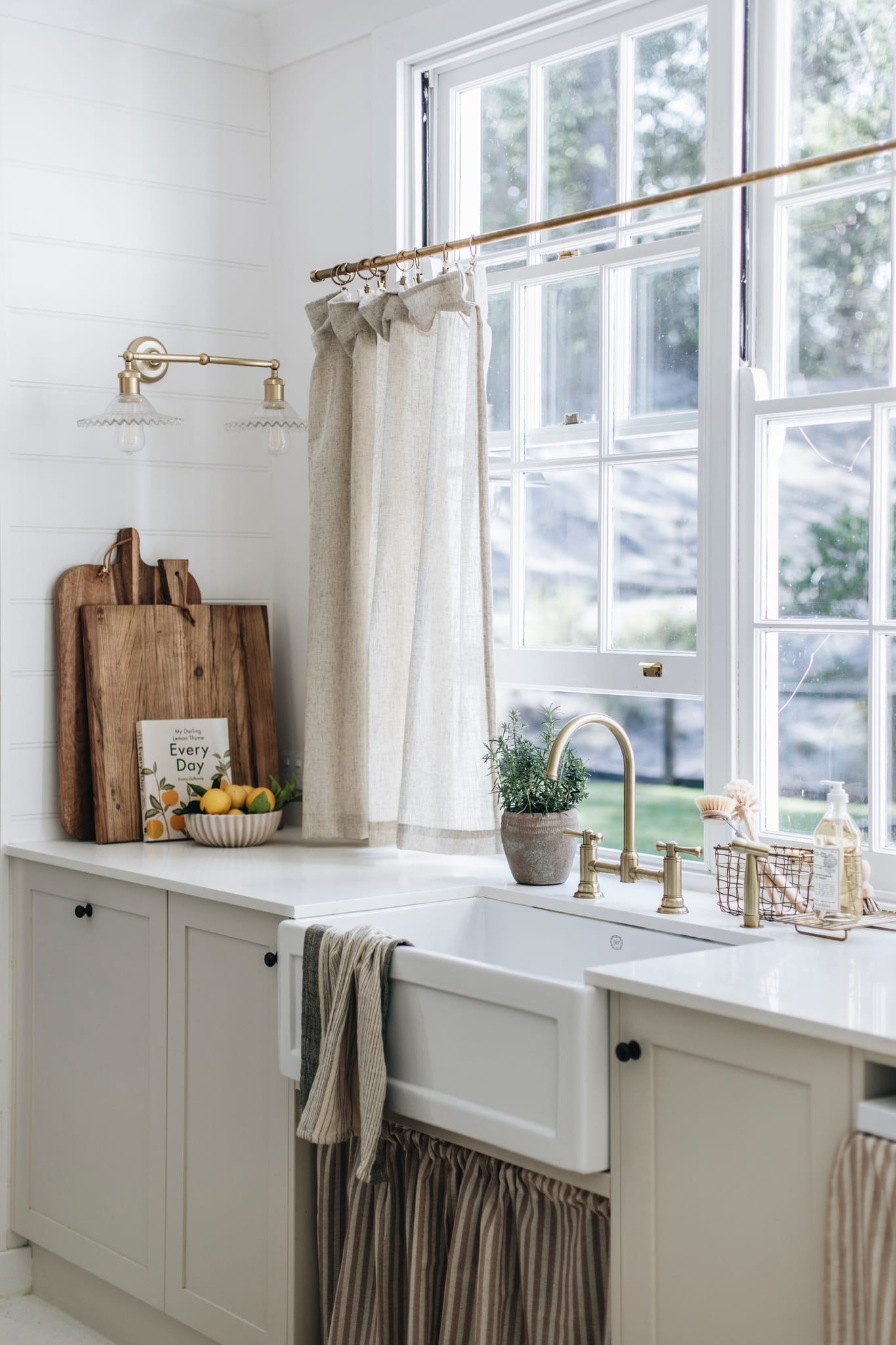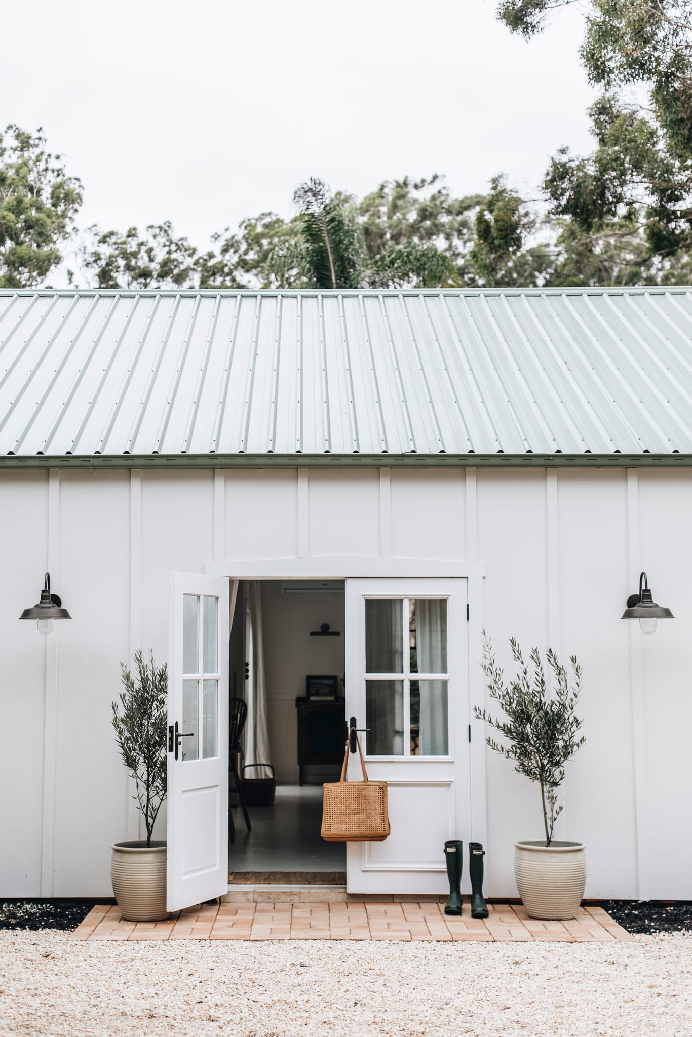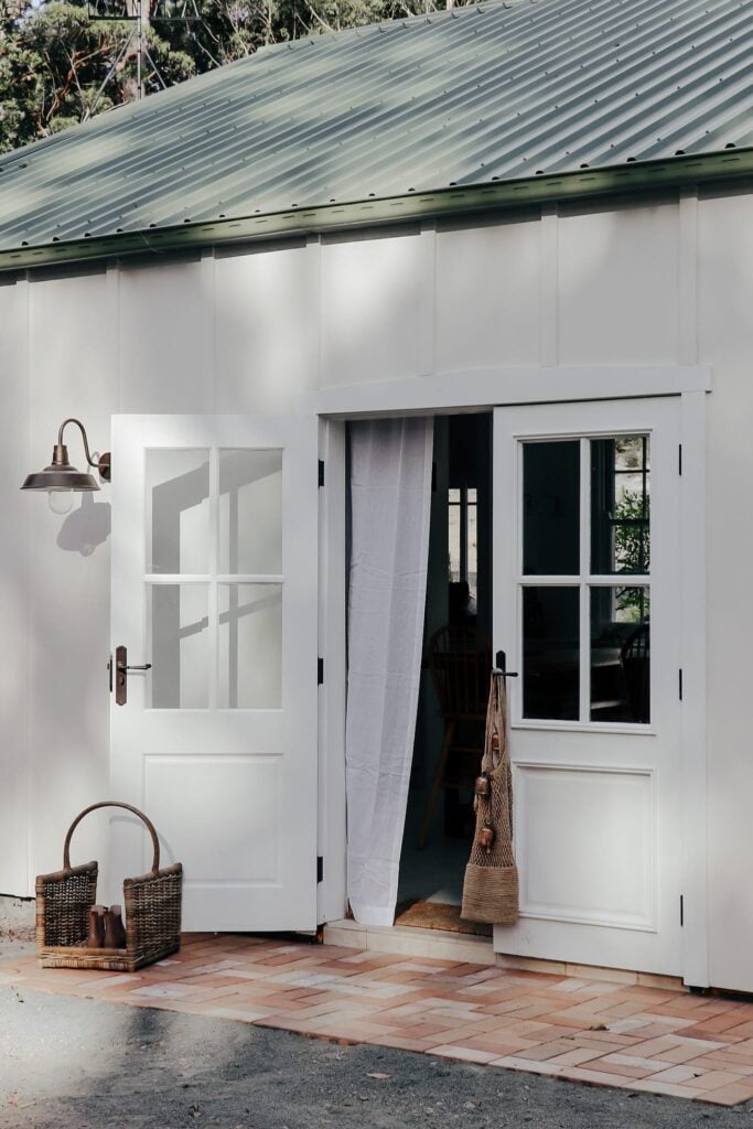Part of the concept of The Shed was to keep the canvas simple in order to let the pieces within it shine. “We kept the space beautifully neutral, with warm white painted walls, a painted concrete floor and warm beige pavers throughout the home,” explains Bliss. “We chose TradCo’s Antique Brass hardware to bring more warmth to the home and complement the lived-in feel of the space.” Her selections included traditional cabinet hardware and heritage light switches, an antique brass door lever, pull handles and antique brass door knobs, all conceived by TradCo.