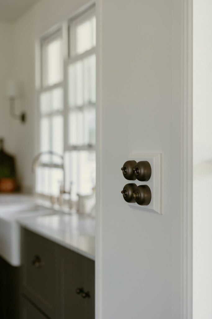 From Traditional Antique Brass Light Switches, to Antique Brass cabinet hardware, the brand features across the build, and in the kitchen in particular with the vintage-style cabinet hardware and Antique Brass Drawer Pulls. “TradCo’s hardware was the perfect final layer, tying everything together with warmth and character. It influenced colour choices throughout the home (and continues to do so) and gave our rooms that aged, timeless look we were striving for.”