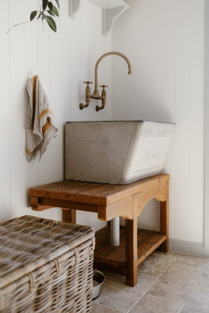 The couple gravitated toward materials with a sense of history and authenticity. “We were drawn to antique and natural finishes,” says Alana. “Unlacquered brass tapware, Antique Brass hardware, recycled timbers, and natural stone benchtops and tiles brought warmth, texture, and a timeless quality to the space.” With a young family and two dogs, they wanted a home that felt grounded and lived-in from the start. “Choosing materials with inherent character gave the house an immediate sense of soul — they made the space feel considered, layered, and full of quiet character.”
