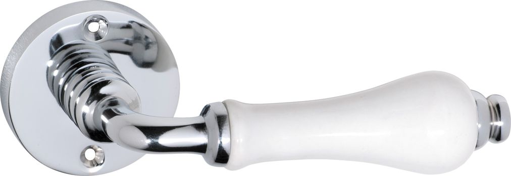 Exeter lever on round rose in solid brass with ivory porcelain lever
