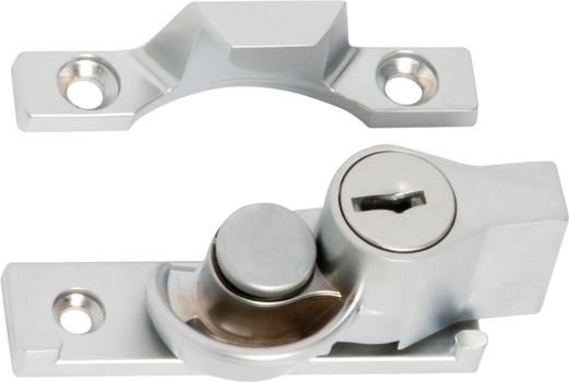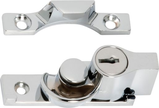 Key operated sash fasteners with narrow base and 12mm catch. Zinc alloy construction.