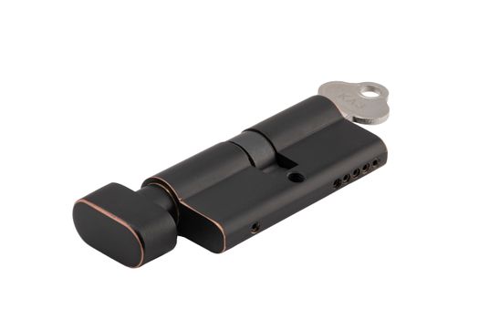 Solid Brass 65mm 5 pin euro cylinder, compatible with all locks and door hardware, used where a key is required on one side of the door and a thumb turn on the other.