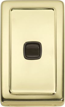 Flat plate 1 gang rocker switches with brass covers and HPM mechanisms.