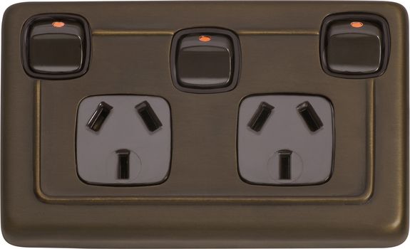 3 Gang Flat Plate Rocker Switches with Double Socket