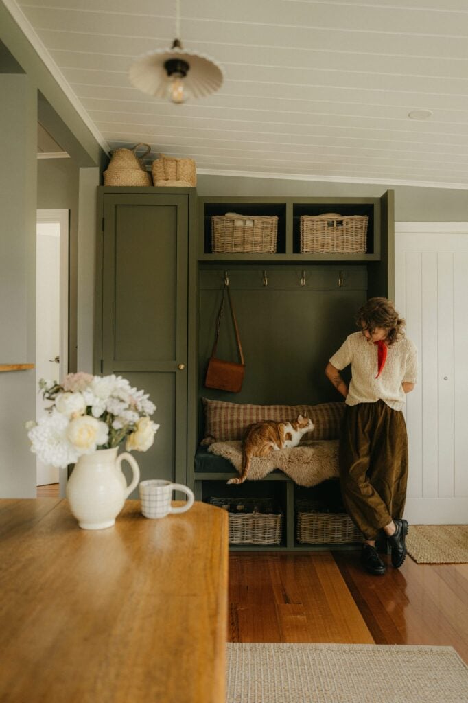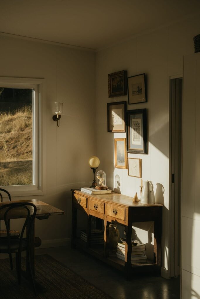 “When we moved to Tasmania two years ago, we fell in love with a special cottage nestled among the orchards and rolling hills of the Huon Valley,” says Eliska Sharp, who shares Glenlossie Cottage with husband, Ethan. “The house itself is around 150 years old and was originally built for the owner of a local apple orchard. Like many homes in the region, it’s modest in scale but full of character and history.”