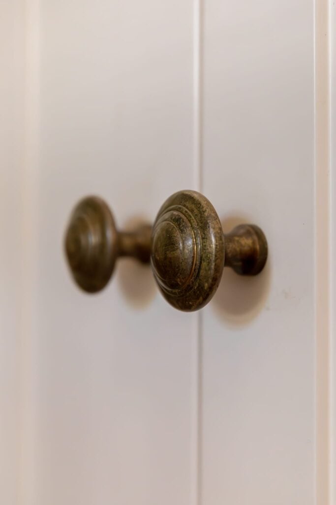 Chosen for its quality and ability to seamlessly integrate into the minimalist country renovation, TradCo’s hardware paid homage to the home’s history. Antique brass finishes were selected to develop a rich patina over time, adding to the home’s story.